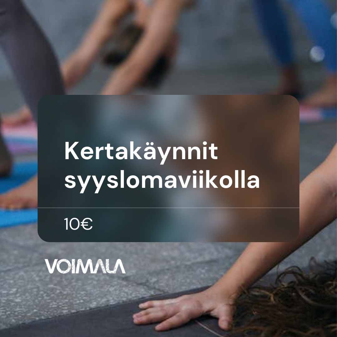 Tervetuloa ryhmäliikuntatunneillemme 18.-24.10.2021 välisenä aikana 10€ kertamaksulla. Varaa paikkasi tunnille kalenteristamme. Maksu tunnille tultaessa käteisellä tai MobilePaylla. Korttimaksu käy ma, ti ja to iltaisin kun asiakaspalvelumme on auki.